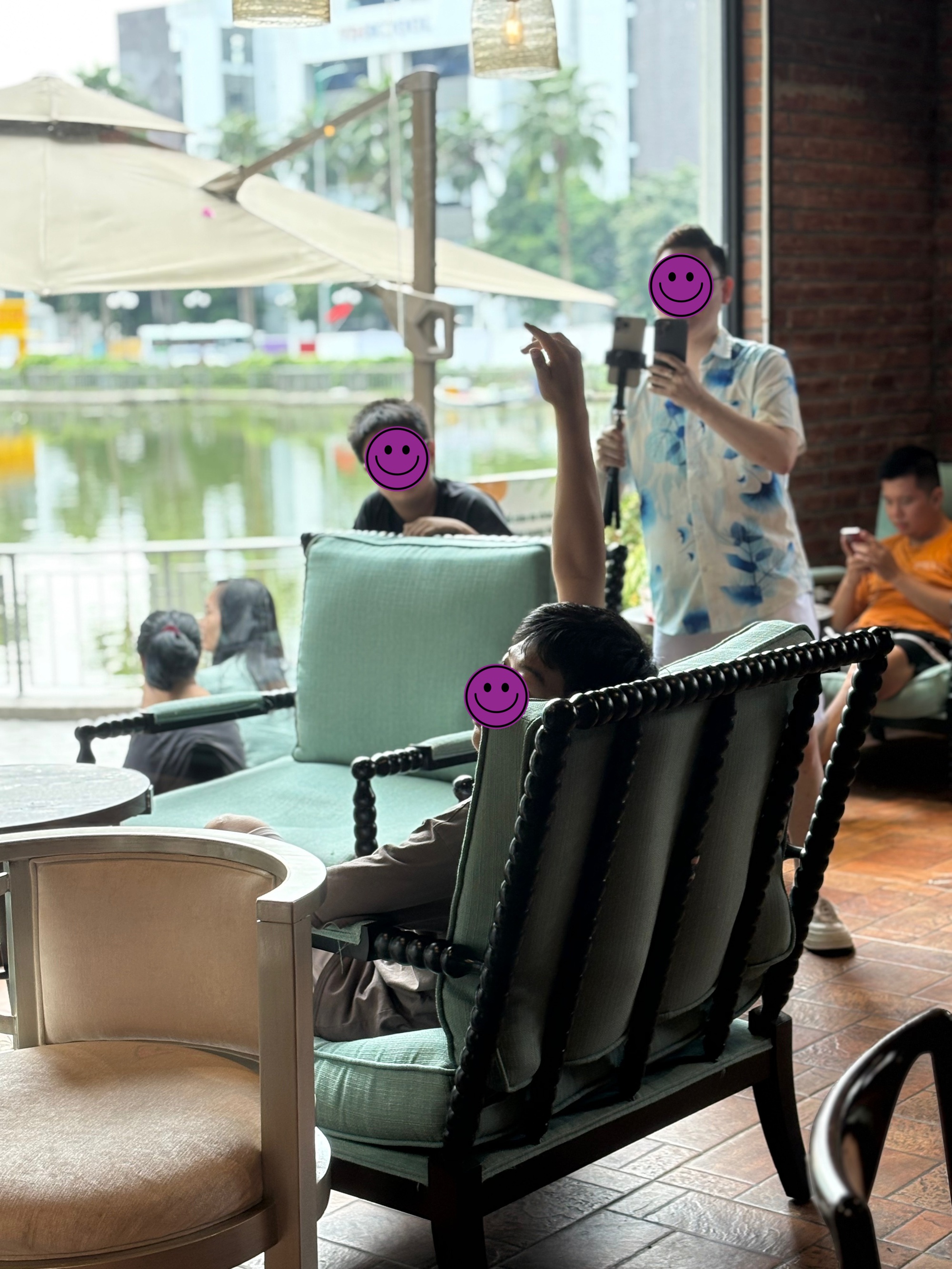 Trong khi đó, nhiều người lại quyết định chờ đợi, thậm chí “xếp hàng” ở khu vực ghế xanh nơi mà nhân vật được cho là “tổng tài” đã ngồi trong video để chụp ảnh.