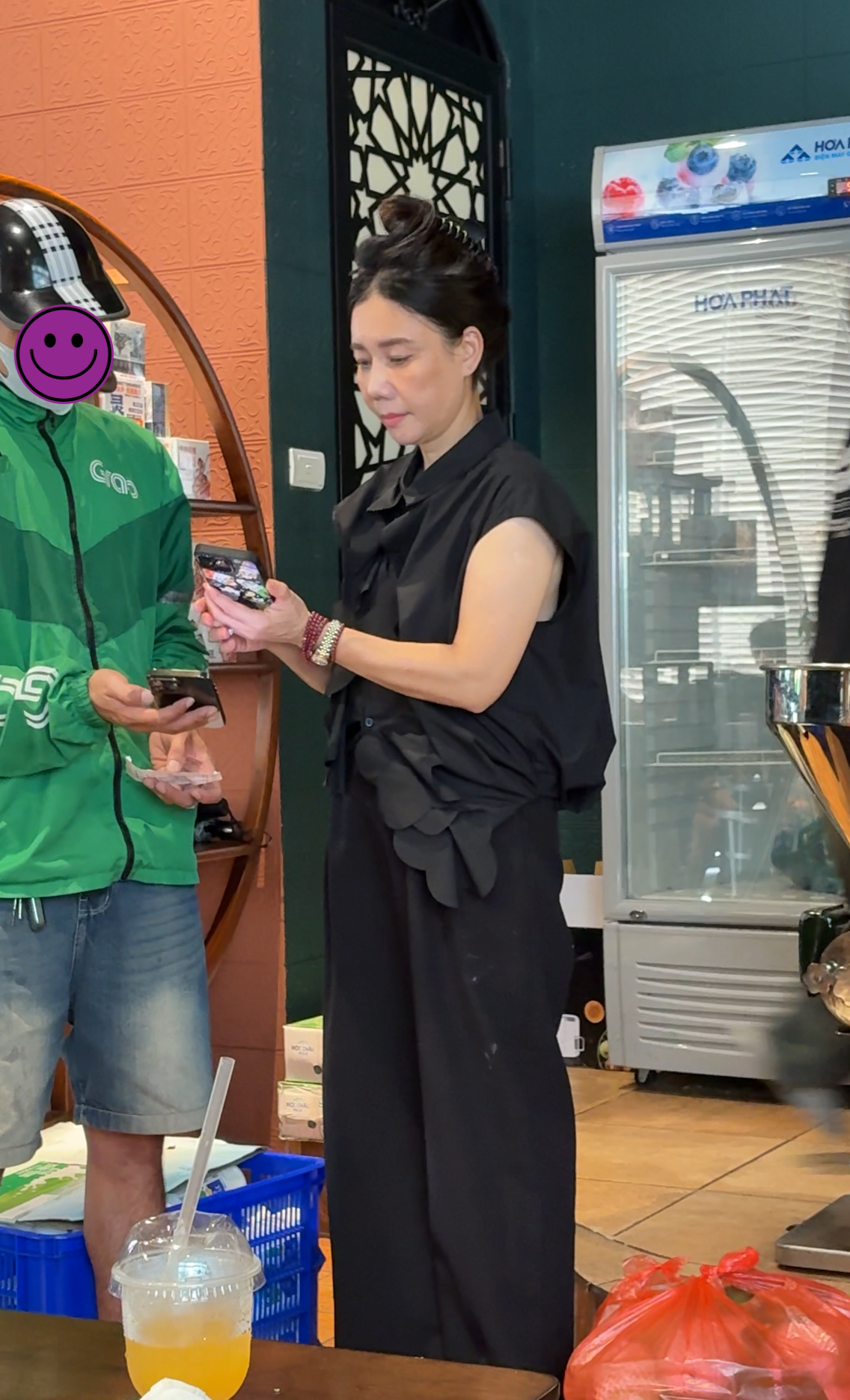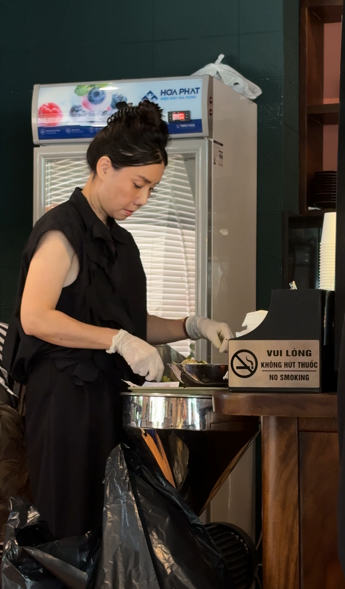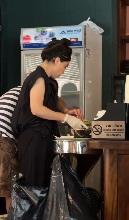Bà chủ tất bật với nhiều công việc, từ điều hành quán đến hỗ trợ phục vụ khách hàng
