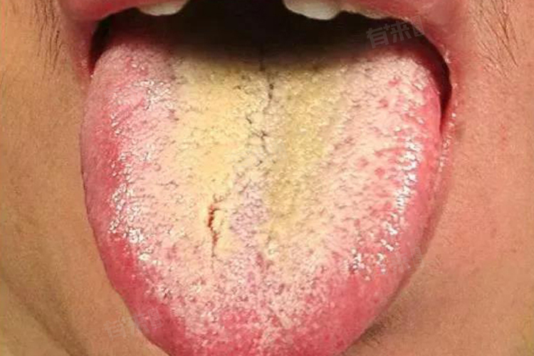 2. Lưỡi sẫm màu, có rêu vàng dày