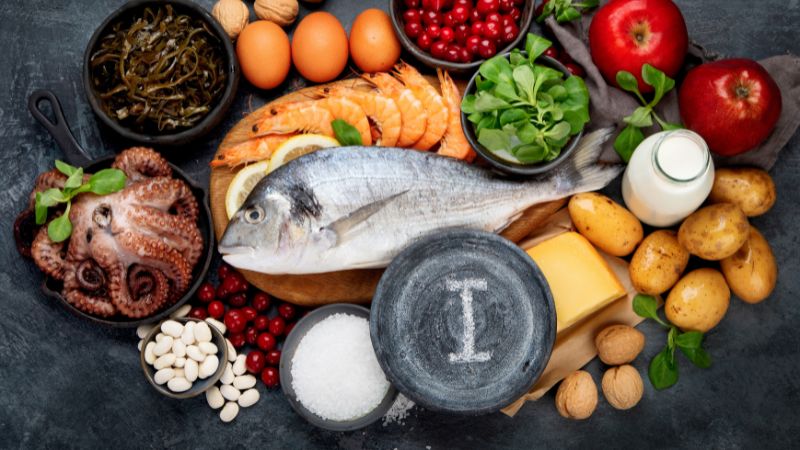 I-ốt là nguyên liệu chính để tuyến giáp sản xuất hormone. Nên dùng muối i-ốt trong bữa ăn hàng ngày và bổ sung thêm thực phẩm như cá biển, rong biển, trứng, sữa. Chú ý ăn vừa đủ, không lạm dụng vì ăn quá nhiều có thể phản tác dụng.