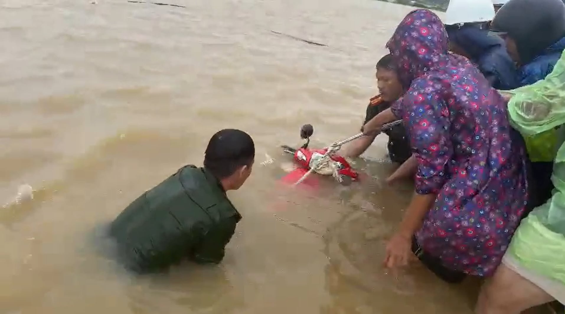 Chiều 28-9, hai cán bộ Công an xã Nam Cửa Việt, tỉnh Quảng Trị đã không ngại nguy hiểm, lặn xuống dòng nước lũ sâu để tìm kiếm và trục vớt thành công chiếc xe máy của người dân bị cuốn trôi.