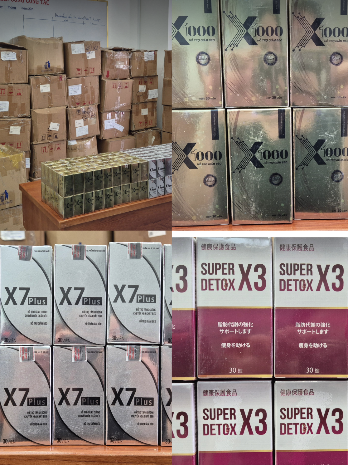 Thực tế, “viên rau củ Collagen” không có hồ sơ công bố chất lượng, không được cấp phép lưu hành, nhưng được Ngân cho đóng gói, dán nhãn trùng thương hiệu X3 – X7 – X1000, rồi quảng cáo là “sản phẩm bổ trợ giúp tăng hiệu quả giảm cân”. Trên bao bì, Ngân ghi “hàng tặng kèm, không bán” nhằm đối phó cơ quan quản lý, song thực tế bán trọn bộ cùng sản phẩm chính như một “liệu trình hoàn chỉnh”.