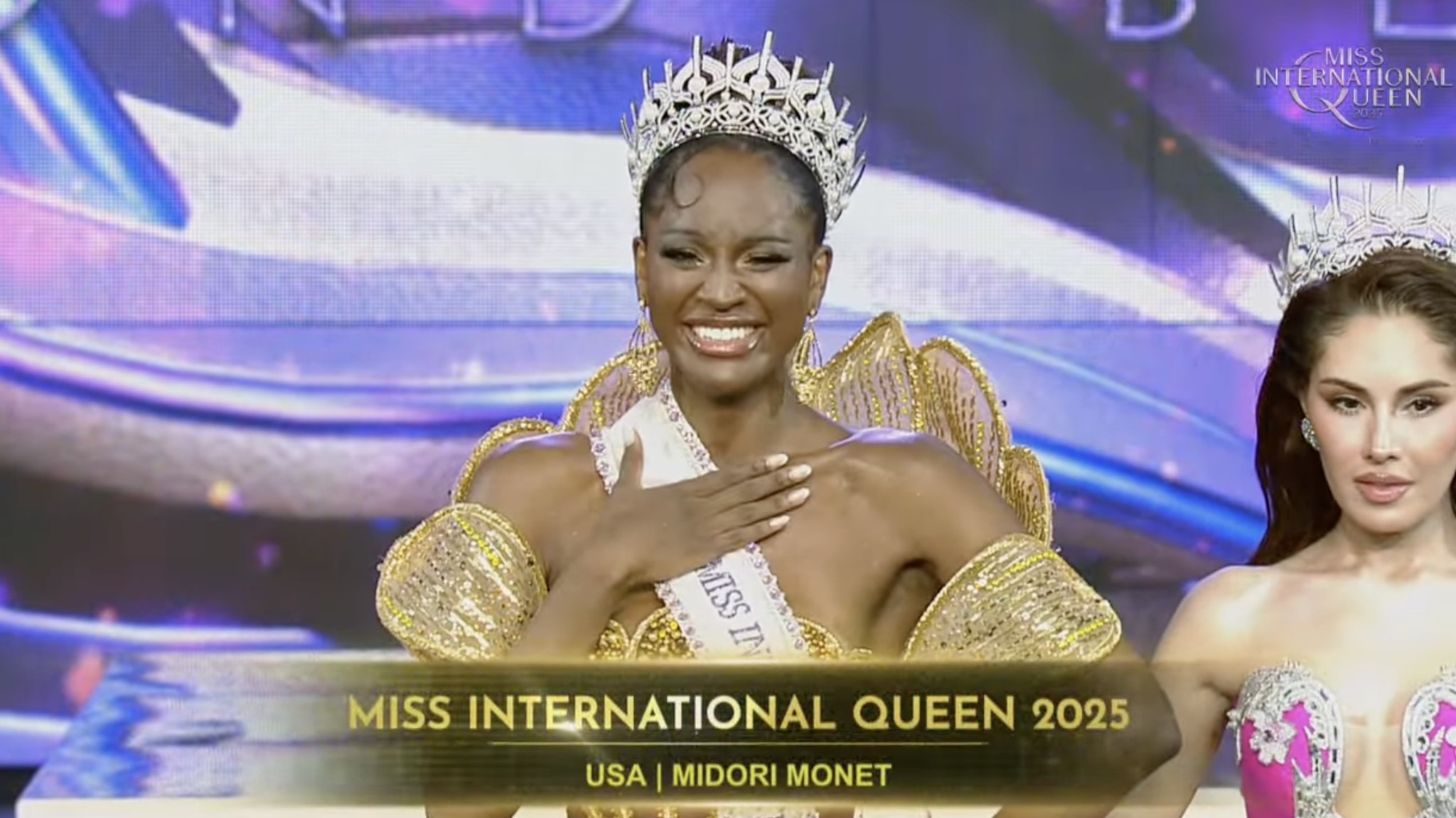 Danh hiệu cao nhất Miss International Queen 2025 thuộc về người đẹp đến từ Mỹ – Midori Monet, trong khi ngôi vị Á hậu 1 gọi tên đại diện của Cuba – Olivia Lauren. Khoảnh khắc đăng quang của top 3 chính thức khép lại một mùa giải Hoa hậu Chuyển giới.