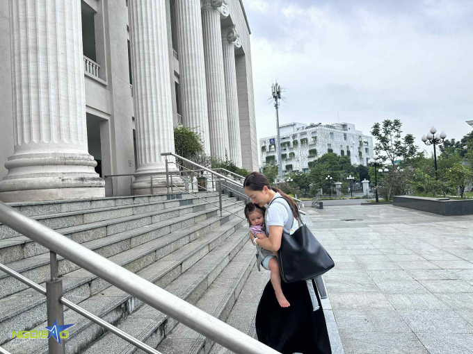 Diễn viên Lan Phương địu con gái Mia đến phiên tòa sơ thẩm xét xử vụ ly hôn giữa cô và ông xã người Anh, sáng 9/9.