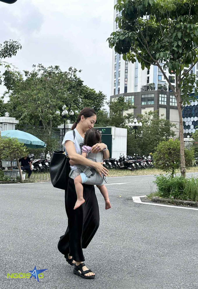 Lan Phương cho biết đưa con theo cùng vì Mia bị sốt, cô không gửi được bé cho ai trông hộ.