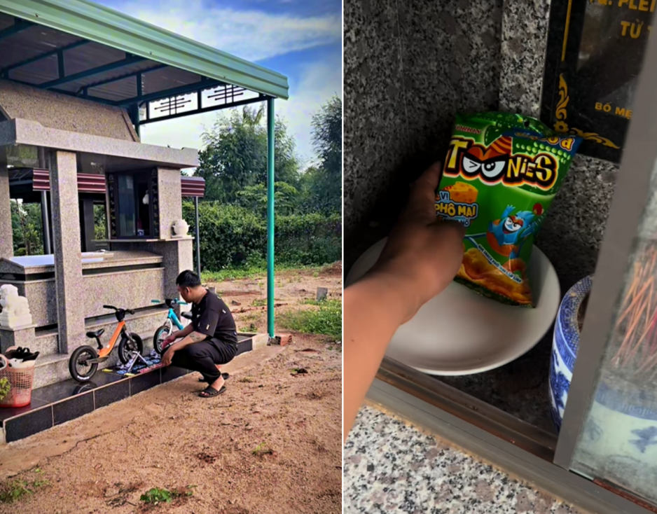 Anh cũng thường xuyên mang quà bánh, đồ chơi đến mộ cho con