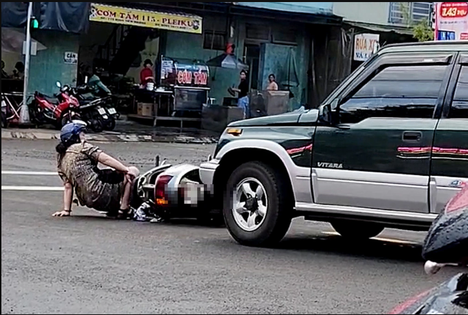 Trước đó, khoảng 16 giờ 45 phút ngày 10-10, tại ngã tư đường Đinh Tiên Hoàng và Phan Đình Phùng (phường Pleiku, Gia Lai), xảy ra vụ va chạm giữa ô tô 5 chỗ 81A 422.41 với một xe máy.